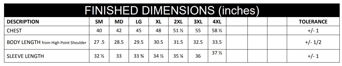 S-5XL (upcharges apply for 2XL-5XL)